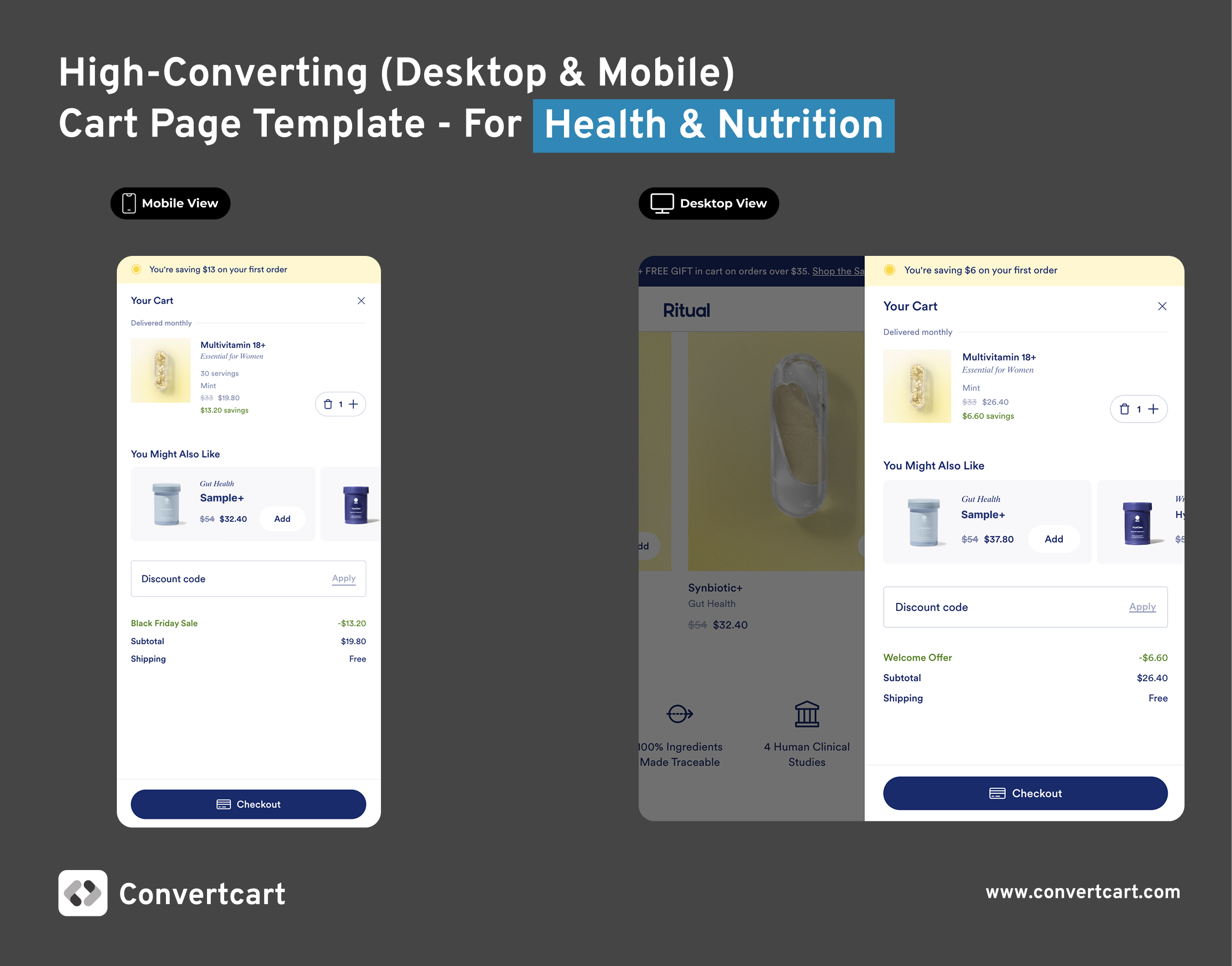 Key takeaway: You don’t always need to include every “high-converting” element on your cart design template—include elements that will help them check out faster (like the themed product recommendations and slashed pricing all within one pop-up).
