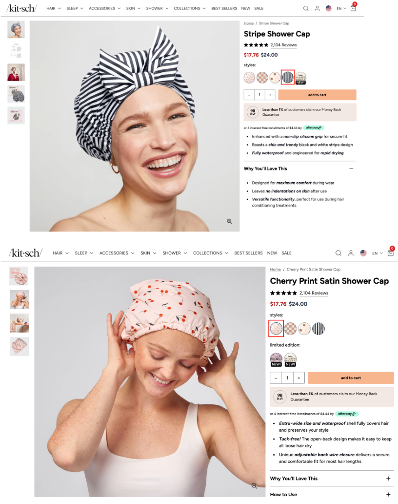 Also, invest in product imagery to show how every product variant looks: