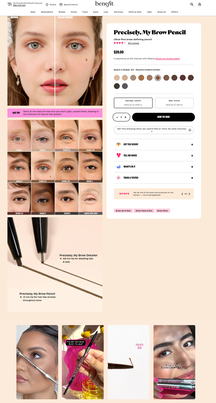 Benefit does it well on their product pages in best skincare website design.