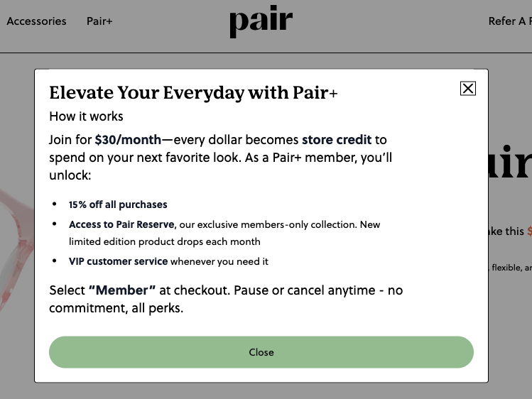 Some of the smartest brands see why tiered discounting can be elevated by combining it with their ongoing loyalty program. Exactly what Pair Eyewear does.