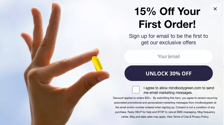 So: subscribe and save, 50% off your first month, whatever your most lucrative offer is — put it up there.