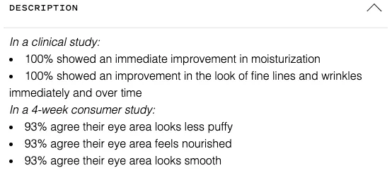 Generally, when you say that a product will nourish your eyes or make your skin better, they are empty claims if you can’t back them up with data.