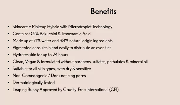 The other is that you could also quantify the benefits in some way. “Made up of 71% water,” “98% natural-origin ingredients,” etc.