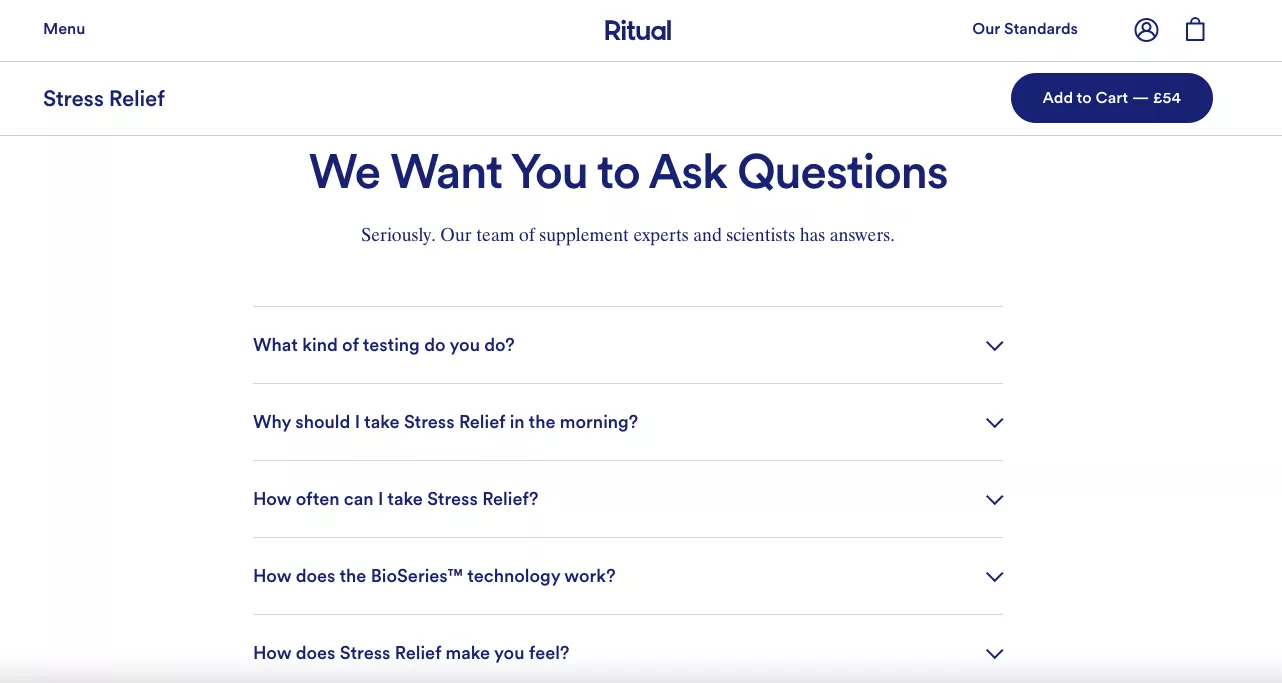 FAQs are very underrated. And sometimes I feel businesses do FAQs in a very salesy way, like they’re asking questions that they wish the customer was asking. “Will it really solve my problem?” And of course, it will solve your problem. So you’re trying too hard to sell.