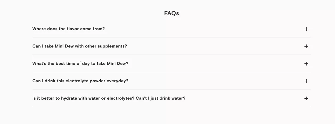 And then product-specific questions, for example: “Where does the flavor come from?” “Is it safe to have during pregnancy?” That kind of really specific stuff that truly concerns your customers.