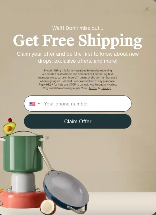 So the A/B test I wanted you to run — and I know for a lot of you, you probably already have this free shipping communication somewhere on the homepage — I recommend you run an A/B test, and you replace this with a ‘subscribe and save’ offer or an email opt-in of some kind.