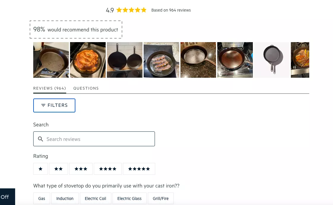 Reviews. I already gave a piece of advice here. What is the best way to do reviews? There are so many plugins available on the market today for you to do that. You could feature a review snapshot — which is this — or you could show what percentage of people recommend the product. I already suggested this in the previous one as well.
