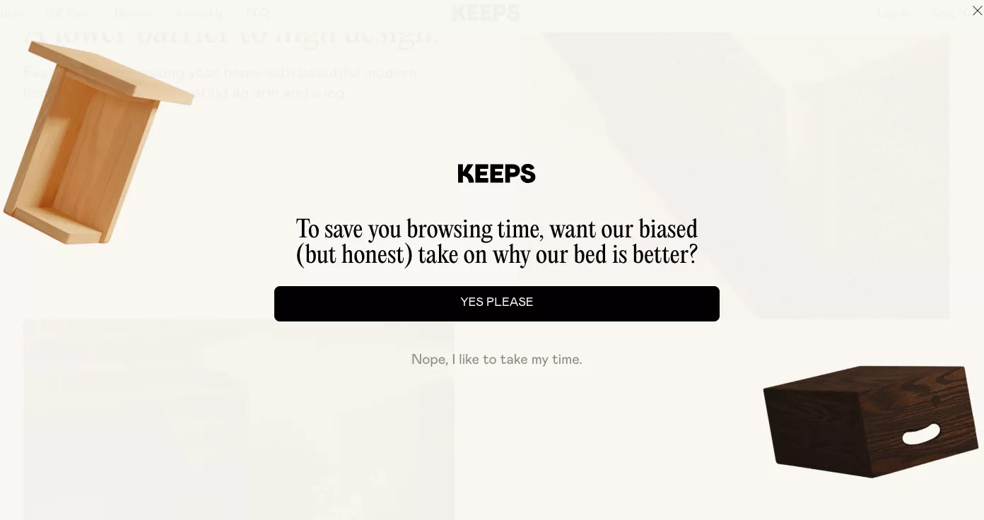 This example that we have is interesting, where we are saying, “Hey, to save you browsing time, should we just tell you why we are better?” And the customer can choose to indulge or not.
