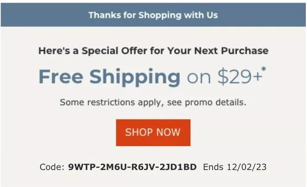You could offer free shipping on the next purchase.