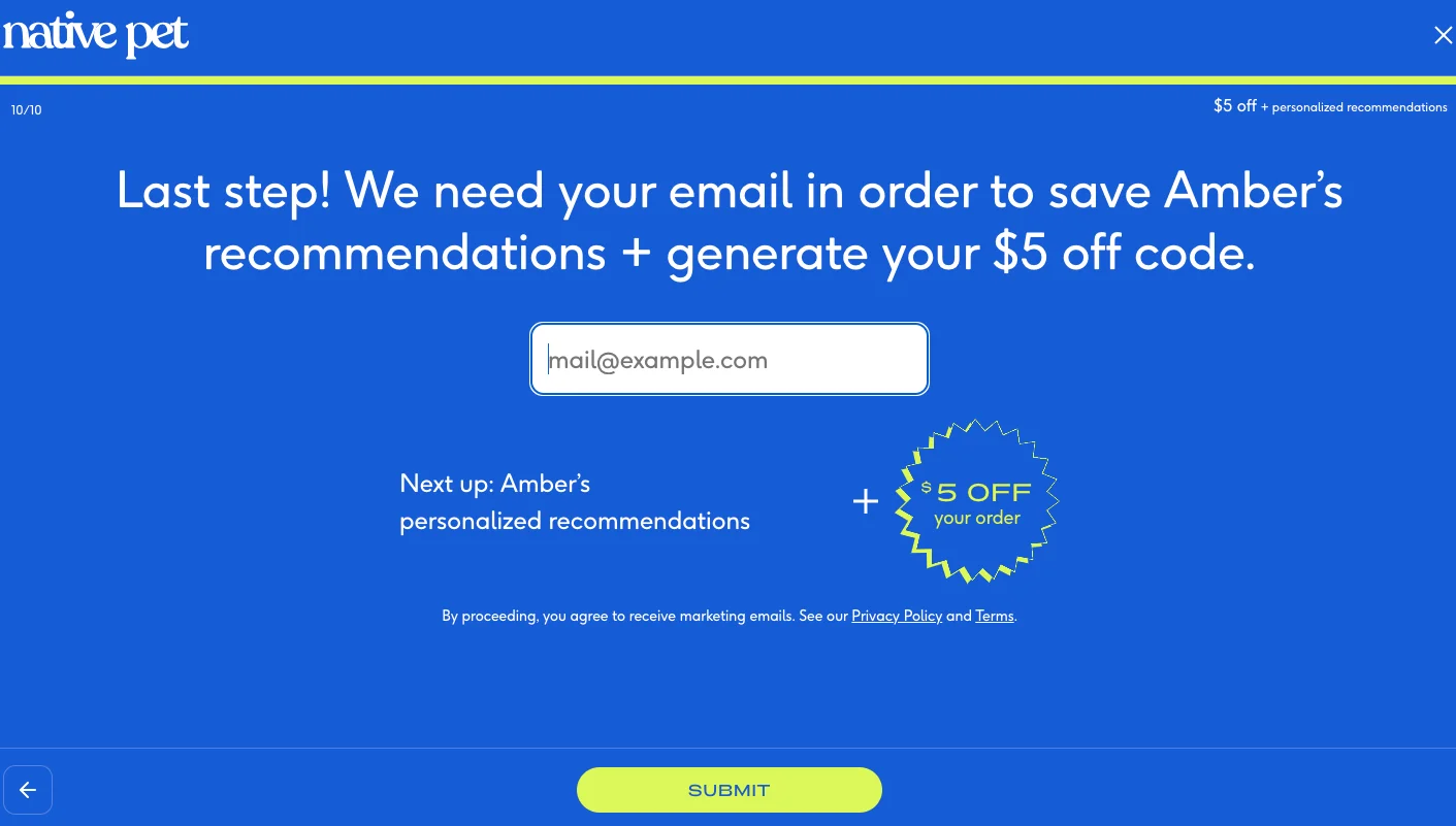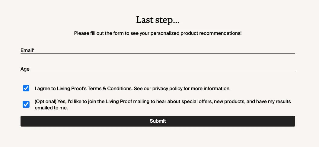 So in this case, the last step could say: “We need your email in order to save Amber’s recommendations — plus we’ll generate a $5 off code.”