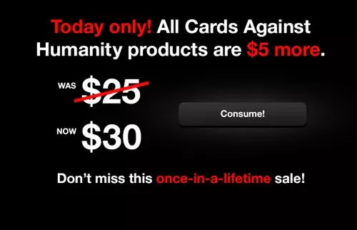 Cards Against Humanity does this. Another brand that does skins for phones — called Dbrand — does this as well. They’re positioned as if the robots are running the company, so they're extremely rude to humans. Their entire marketing is very interview-like. In this case, you can see the call-to-action is